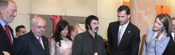 Los Príncipes inician su viaje a Asturias con una visita a la exposición «Cruces del arte», realizada por nueve artistas nacidos en los 70